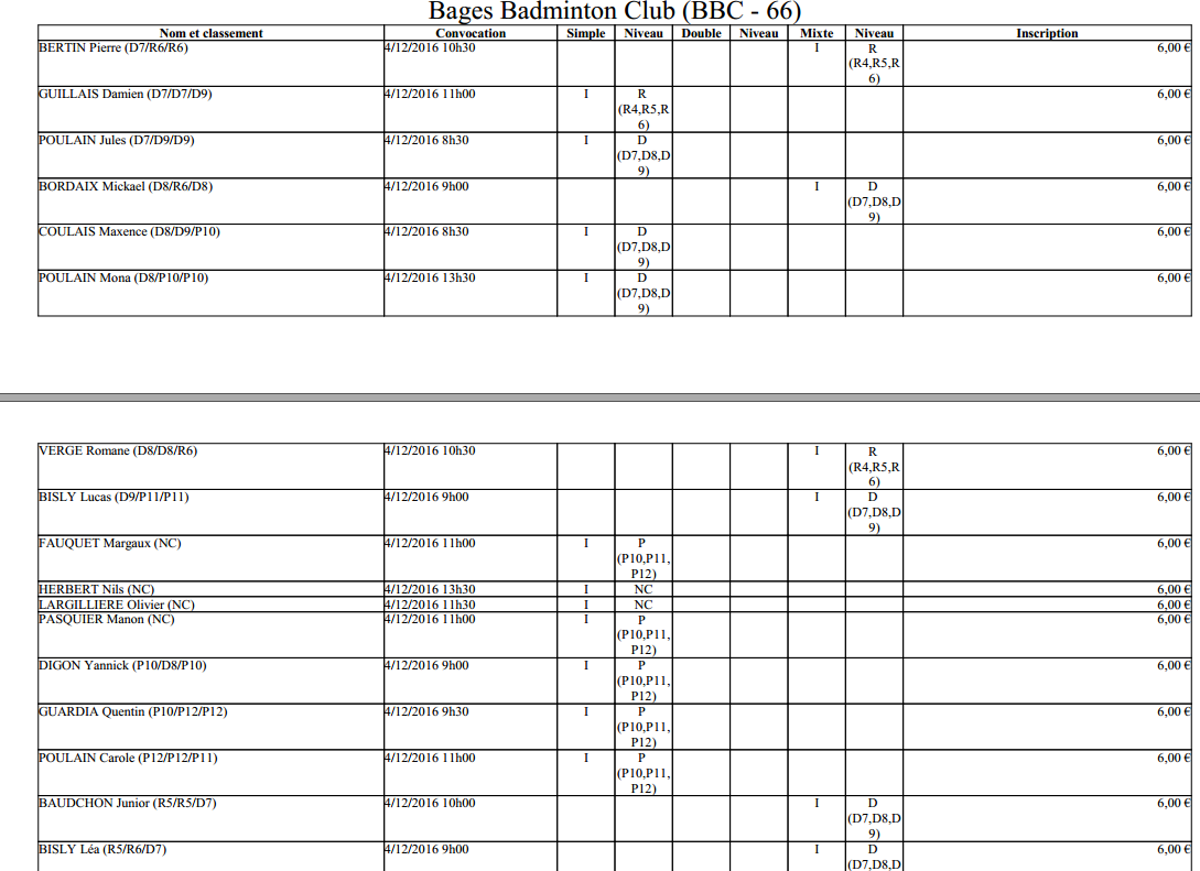 Les joueurs doivent se présenter à la table d’inscription lors de leur arrivés à l’heure de la convocation. Nous commençons à 8 h, les premiers convoqués peuvent arriver à 7h 30 une demi-heure avant.