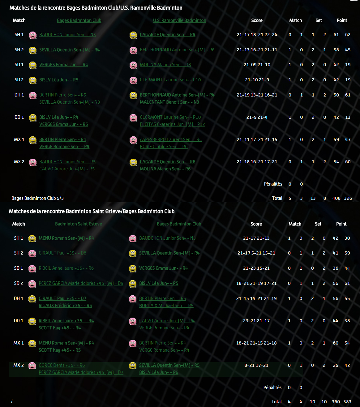 • Résultats tournoi