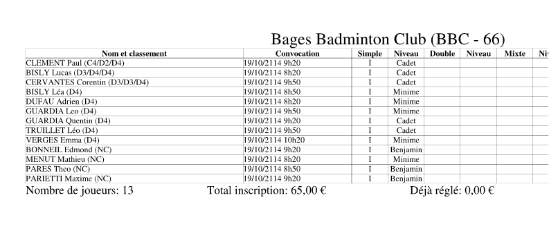 Je vous rappelle qu’en raison du peu d’inscrit en double ,il n’y aura pas de tableaux de double.