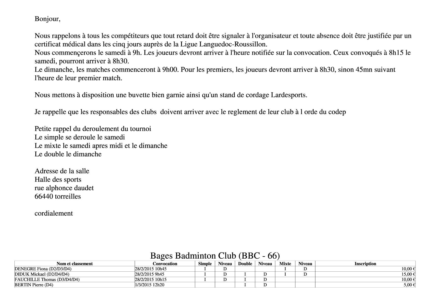 convocation champ départemental de Torreilles