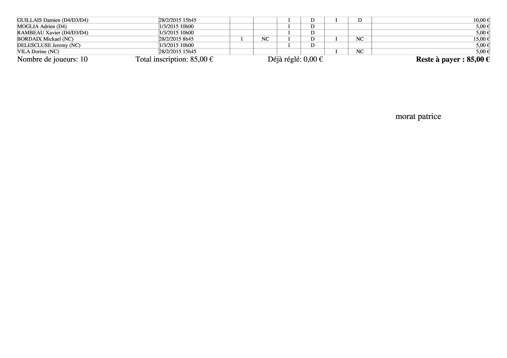 Résultats tournoi