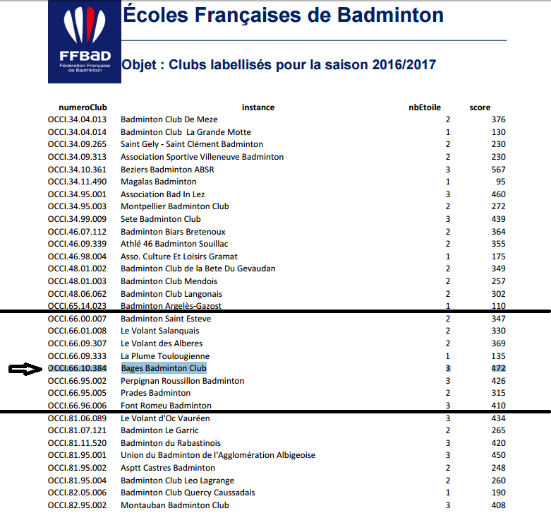 La ligue ne se nomme plus ligue Languedoc Roussillon mais ligue Occitanie de badminton.