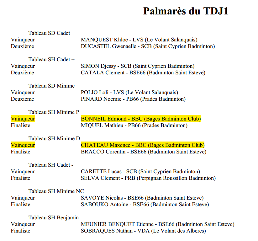 résultats TDJ 1 Publié le 23 octobre 2016 par Adrien Voici les résultats du 1 TDJ de la saison Bravo à tous nos joueurs (34)