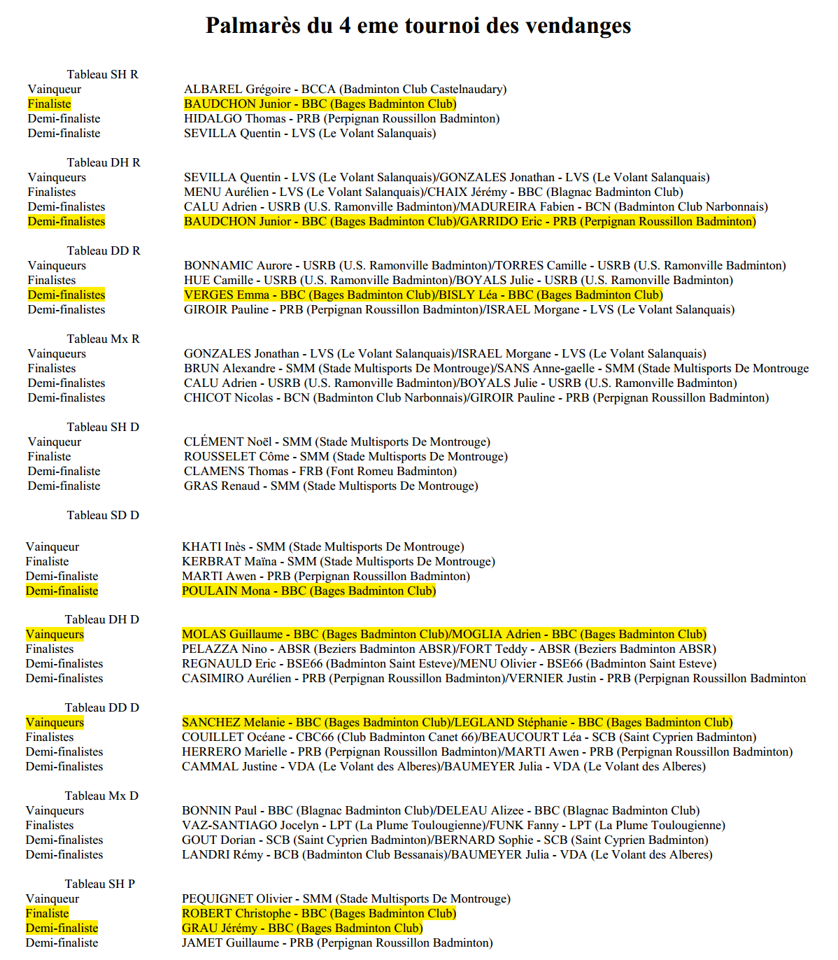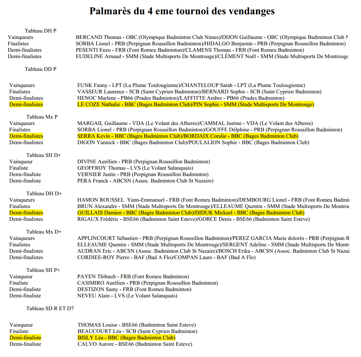 Palmarès du 4 eme tournoi des vendanges Publié le 31 octobre 2016 par Adrien Voici les résultats du 4 eme tournoi des vendanges Bravo à tous nos joueurs (16)